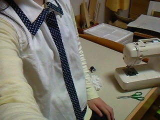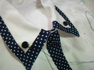 あとバイアス一本つけて~、スナップつけて~、飾りボタンつけて上着はおしまい!!