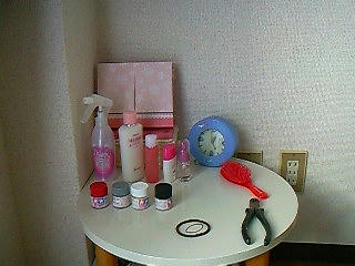 化粧水とか鏡とか女の子っぽいものが並んでいる、とみせかけて